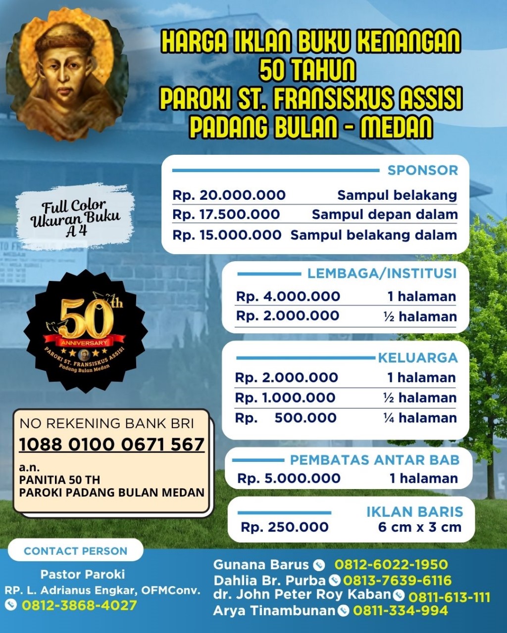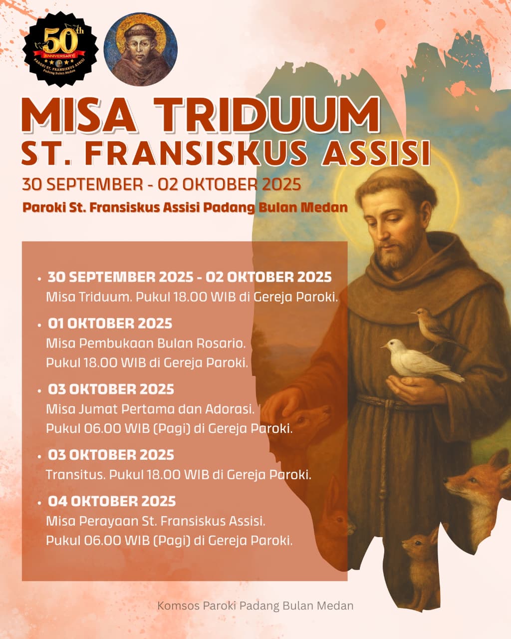 Selamat atas 50 tahun Paroki St Fransiskus Assisi Padang Bulan Medan
