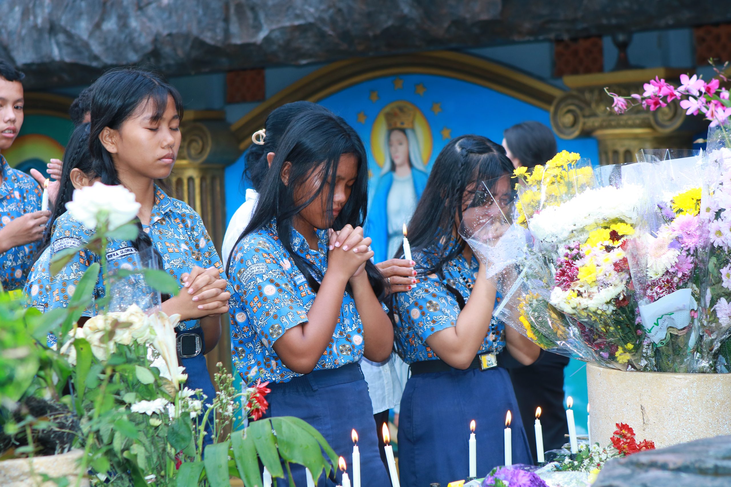 StFransiskus.id, Dalam semangat bulan Rosario, para siswa kelas IX dan pengurus OSIS SMP St. Antonius Bangun Mulia Medan melaksanakan Doa Rosario Bersama di Gua Maria…